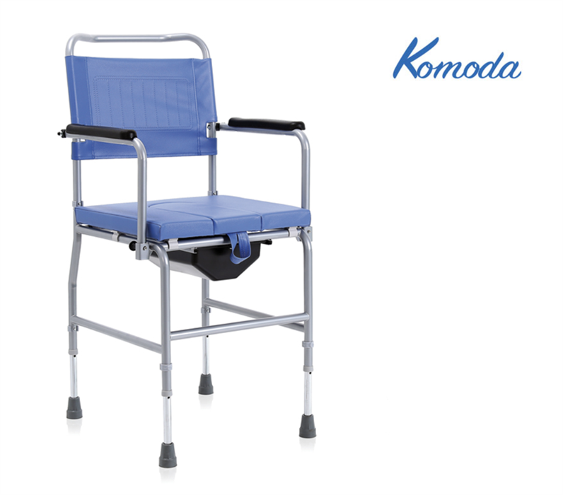 Toilettenstuhl Komoda blau, SB43, auf 4 Füssen, höhenverstellbar, inkl. Eimer