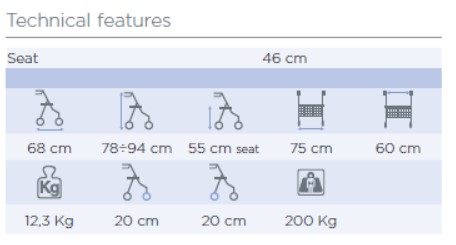 Rollator Apollo HD XL inkl. Korb + Rückenbügel, max. Belastung 200kg