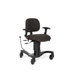 Setzen Sie sich und verrichten Sie Ihre gewohnten Tätigkeiten, ohne Ihre Energie zu verbrauchen. Stabiler und sicherer Stuhl mit Zentralbremse und stützenden Armlehnen. Sicheres und bequemes laufen-trippeln mit dem Stuhl. Hervorragender Halt und Sitzkomfort