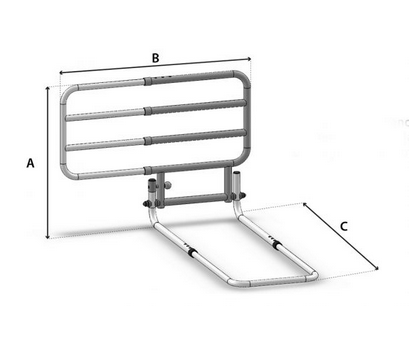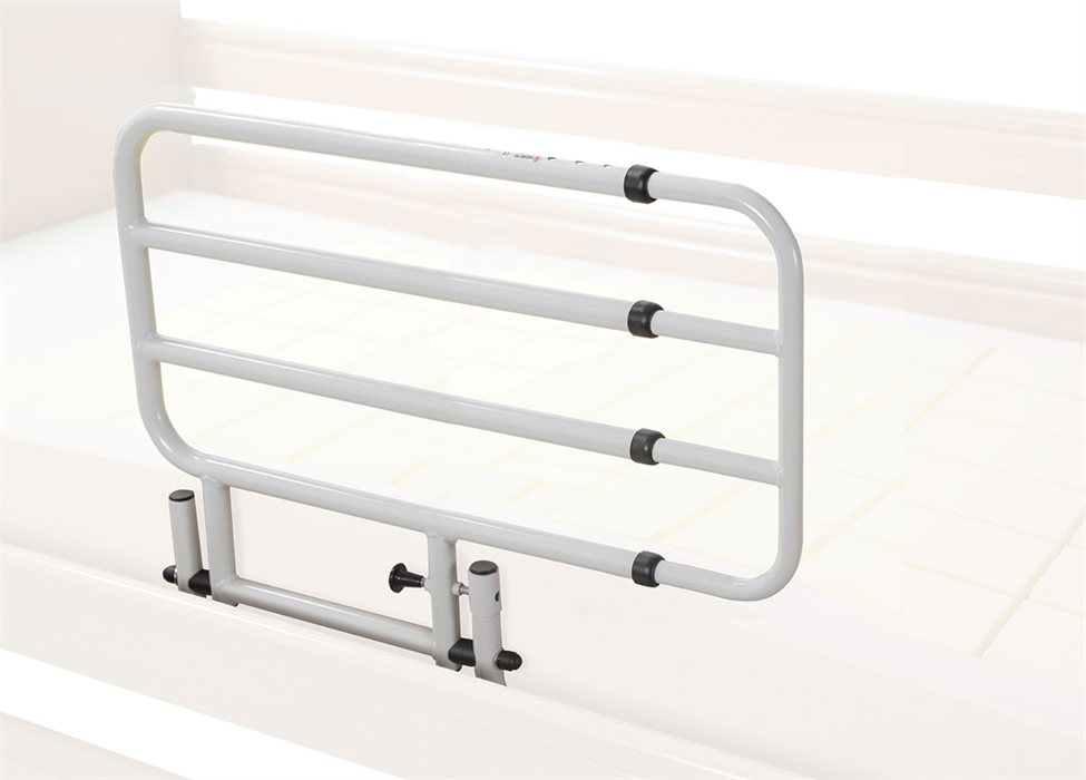 Seitengitter und Handgriff in einem. In der Länge verstellbar und bei rahmenlosen Betten herunterschwenkbar. Kann an fast jedes Pflegebett angebracht werden. Wahlweise rechts oder links montierbar.