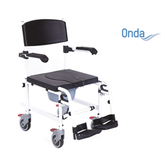 Bequemer und leichter Dusch-/Toilettenstuhl auf Rädern für WC und Dusche. Leichte Bauweise mit Aluminiumgestell. Die Armlehnen sind klapp- und abnehmbar. Der Stuhl hat 4 einzeln arretierbare Räder. Er hat schwenk- und abnehmbare Fussstützen.Produktdetails: