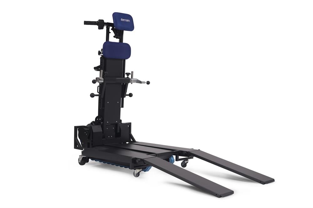 Die Neigung kann bis zu 55 Grad eingestellt werden um den Patient im Rollstuhl der Steigung der Treppe anzupassen. Die aussergewöhnliche Tragfähigkeit von bis zu 300kg ermöglicht es, auch schwere Rollstühle und/oder Patienten sicher über eine Treppe zu transferieren.