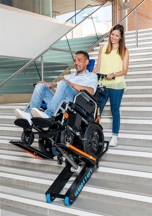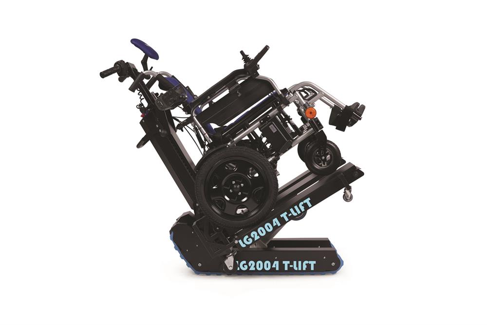 Treppenraupe T-Lift, bis zu 300kg, für Elektrorollstühle, inkl. Rampe und Stabilisator