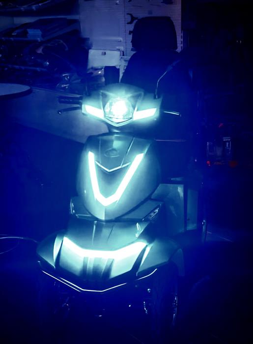 - LED Standlicht, LED Licht, Blinker, Warnblinker, Bremslicht sowie ein Horn