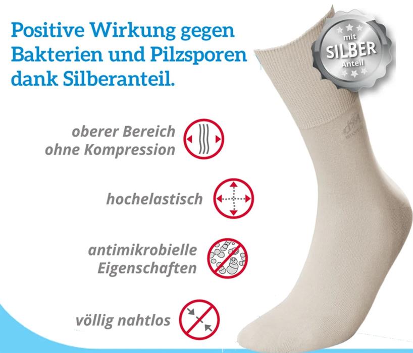 DEOMED Cotton Silver Baumwollsocken mit Silber ohne Gummi speziell für Diabtiker antibakteriell