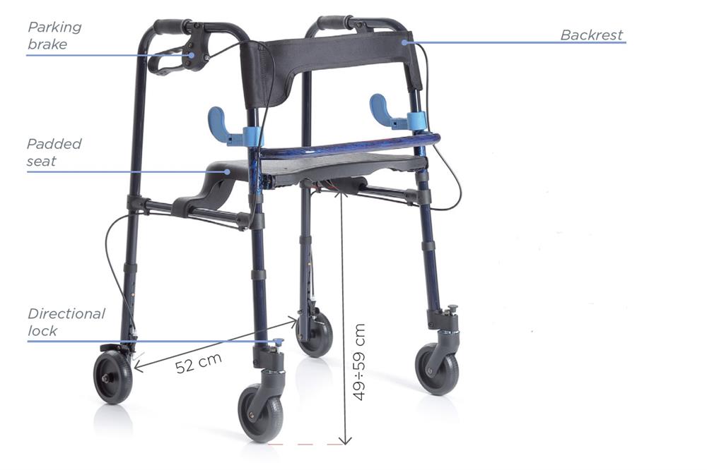 Der integrierte, klappbare Sitz ermöglicht jederzeit eine bequeme Ruhepause. Ergänzt wird der Komfort durch eine praktische Rückenlehne aus Stoff.